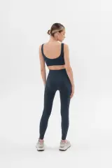 Power Rib Dikişsiz Yüksek Bel Kadın Spor Tayt Mavi Grafit