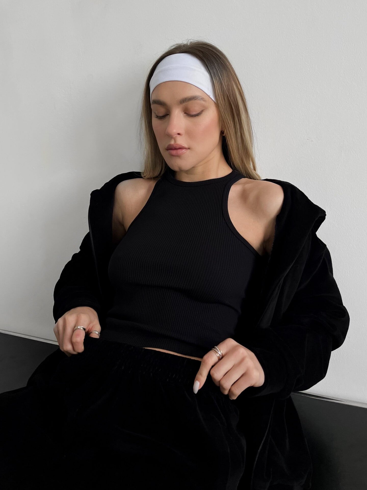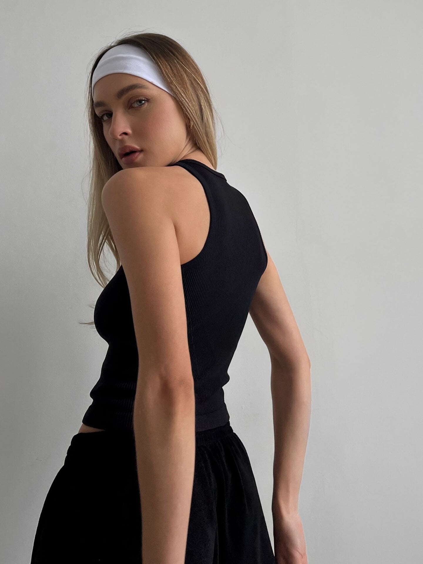 City Rib Toparlayıcı Dikişsiz Tank Top Siyah
