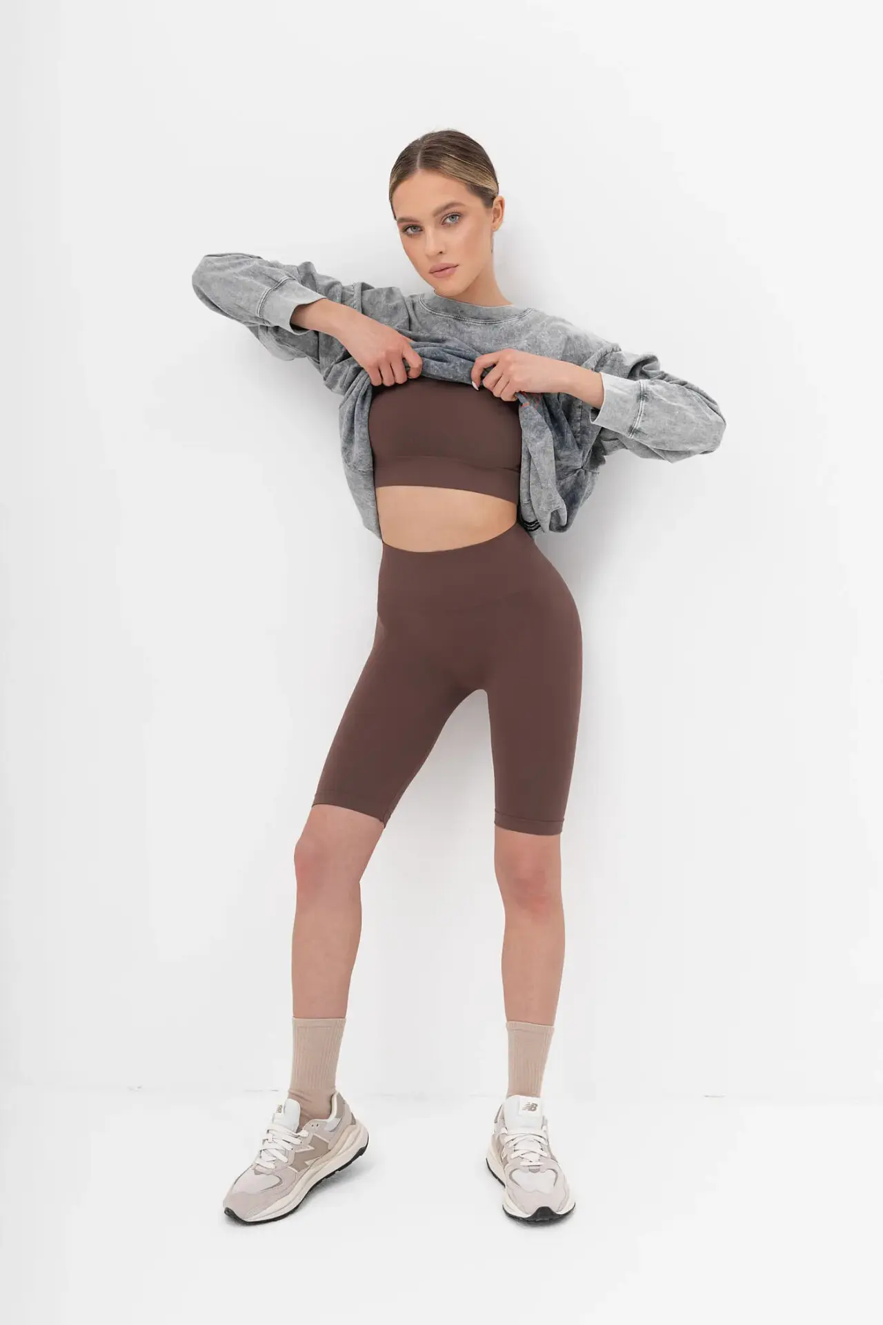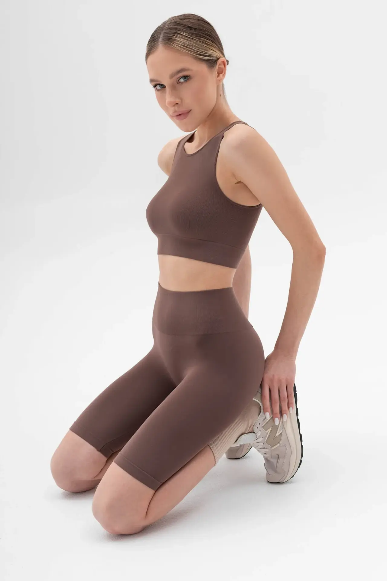 Feel‑Free Dikişsiz Yüksek Bel Kadın Spor Şort /Kısa Tayt Kahverengi