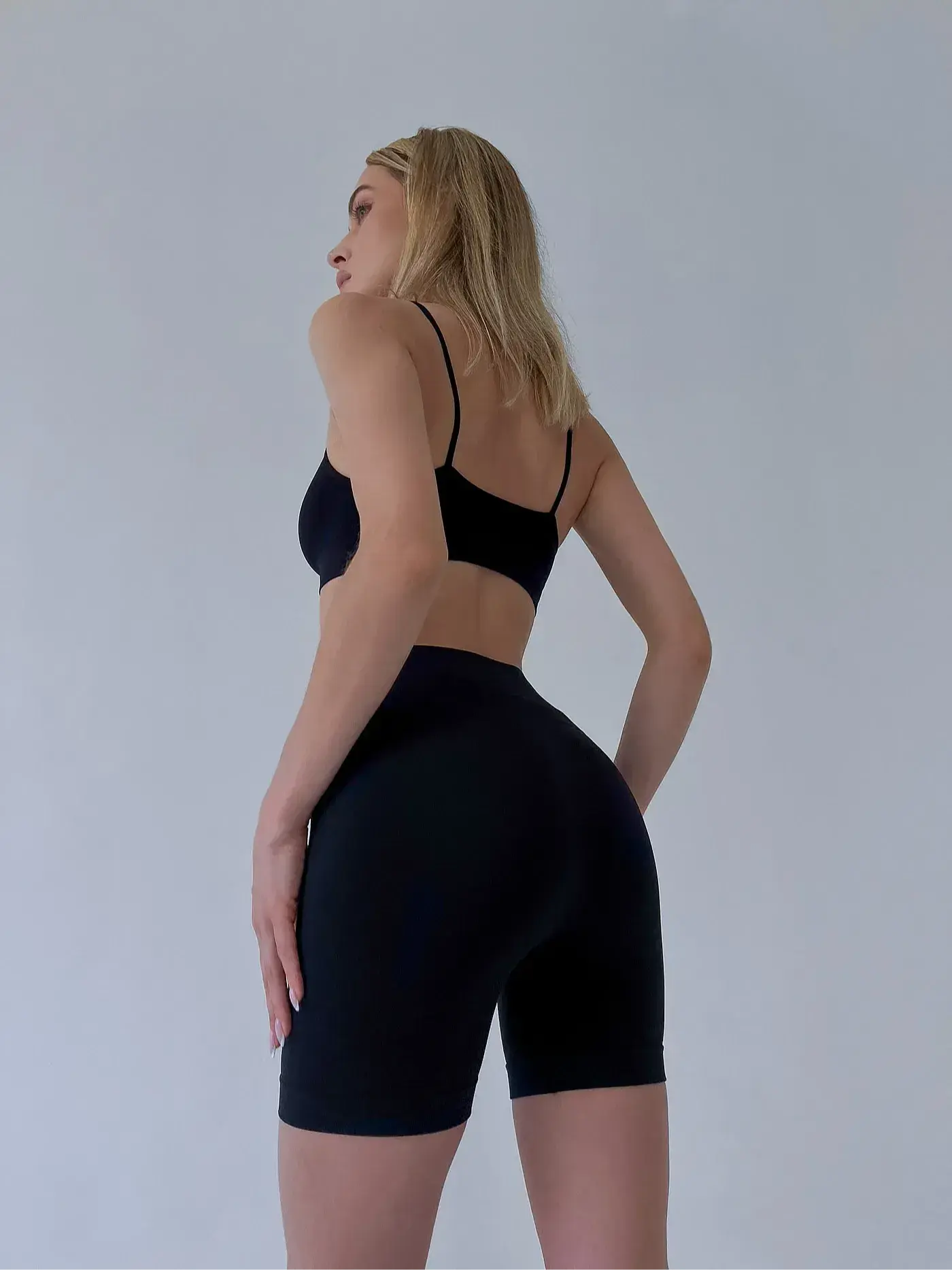Feel-Strong High Waist Energy Bike Shorts, yüksek bel yapısı, kısa tayt boyu ve vücudu saran seamless (dikişsiz) formu ile gün boyu konfor sunan modern bir kadın spor şort modelidir.