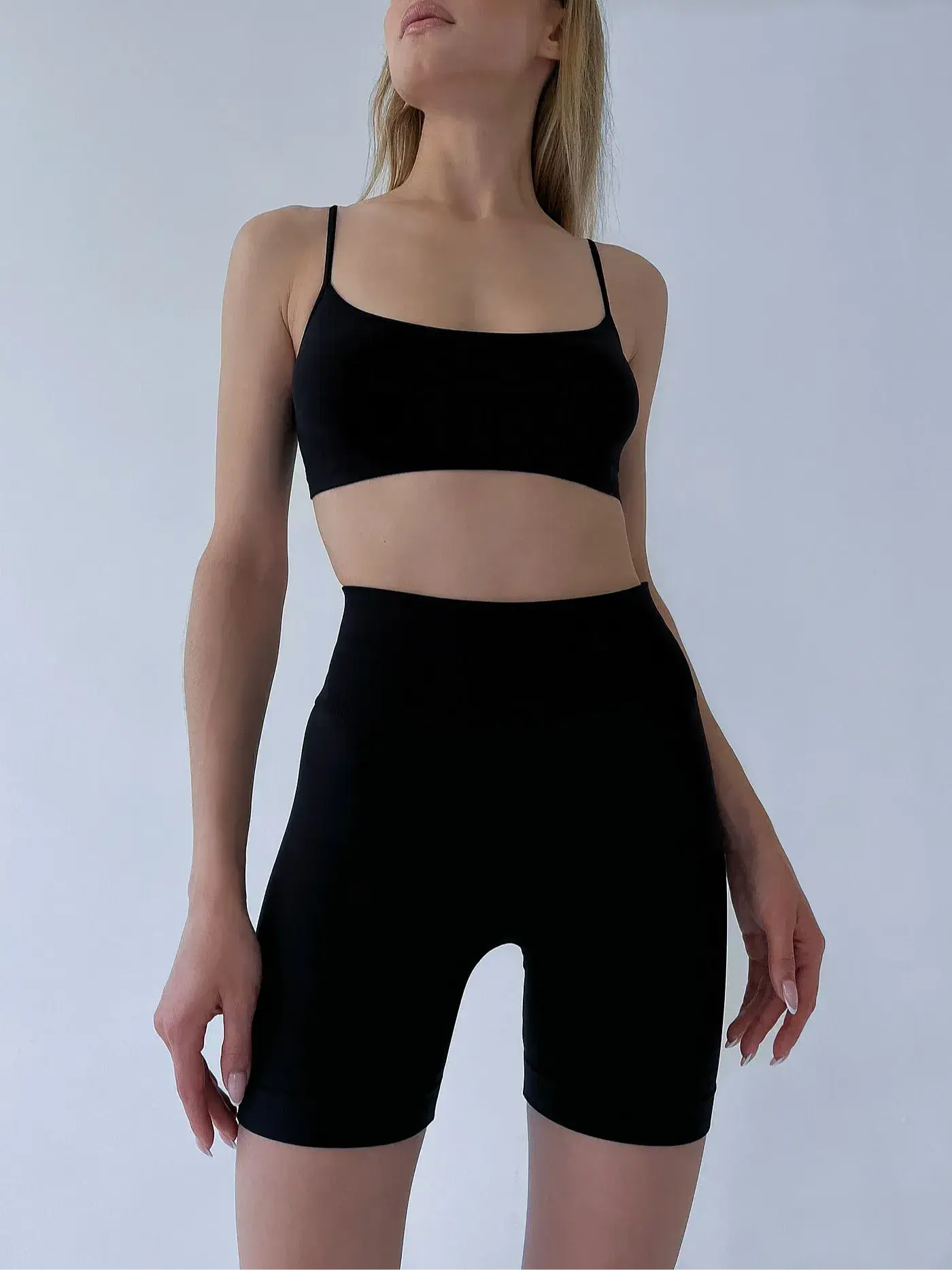 Feel-Strong Dikişsiz Yüksek Bel Kısa Spor Tayt Şort Siyah