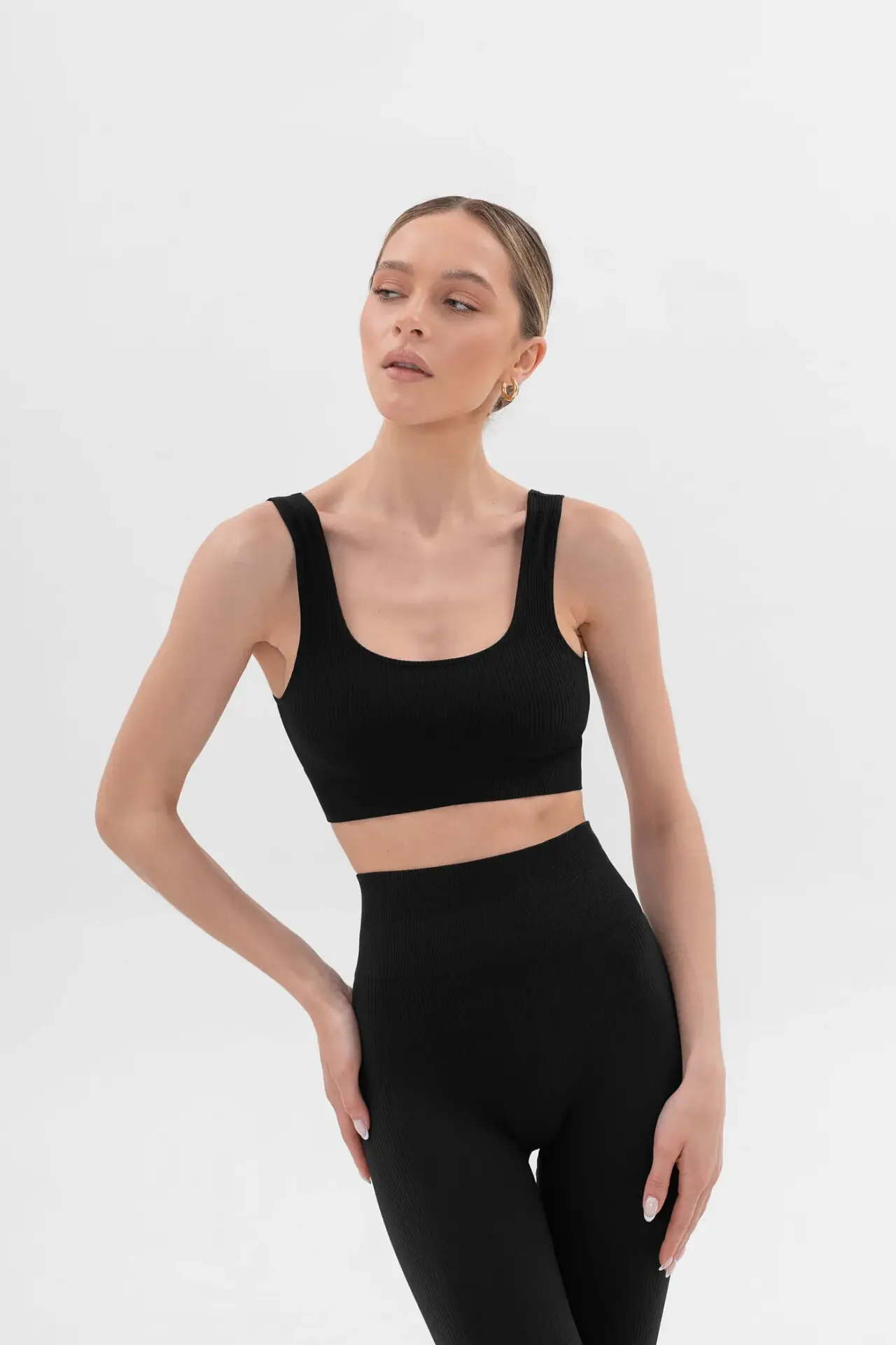 Power Rib Seamless Toparlayıcı Dikişsiz Spor Atlet Siyah