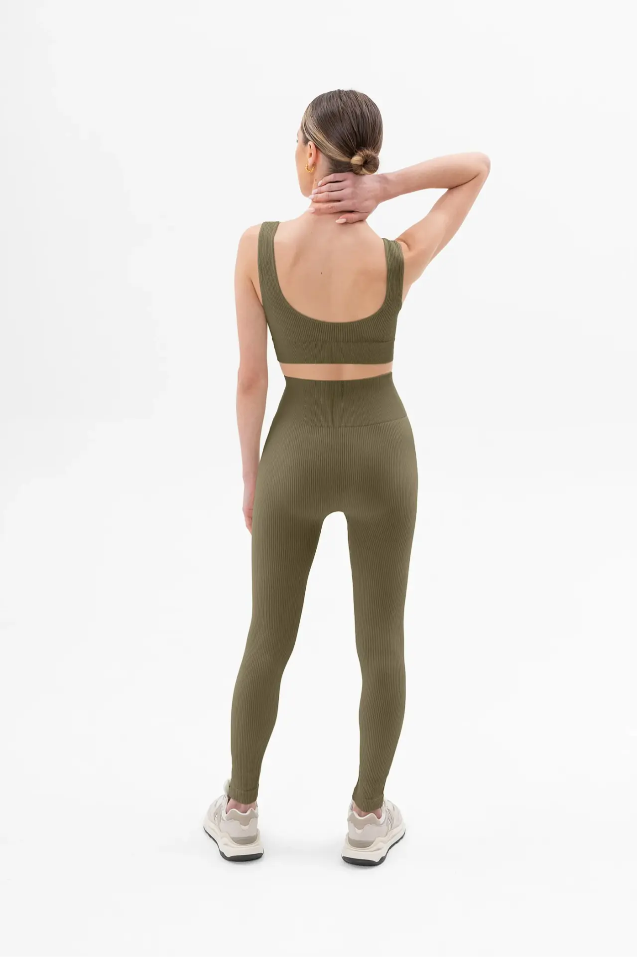 Power Rib Dikişsiz Yüksek Bel Kadın Spor Tayt İguana Yeşili